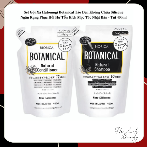 Cặp gội xả Hatomugi Botanical Táo Đen Nhật Bản giúp mềm tóc, phồng tóc, lâu bết gói 400ml