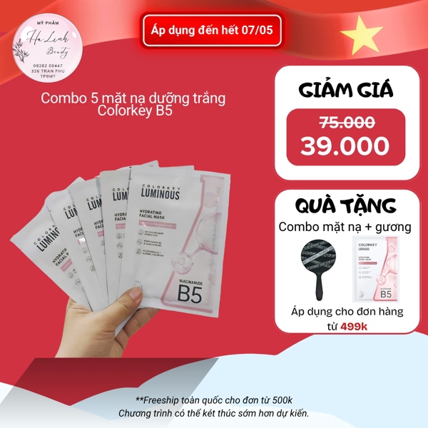 Combo 05 Mặt Nạ Giấy COLORKEY LUMINOUS Vitamin B5 [SALE 30.04]