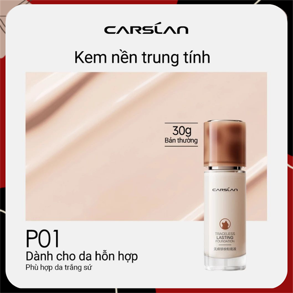 Carslan Traceless Lasting Foundation dạng lỏng là sự lựa chọn hoàn hảo cho những ai mong muốn lớp trang điểm mịn màng, lâu trôi và không lo bị bóng dầu suốt cả ngày. Với công thức đặc biệt kiềm dầu và chống thấm nước, sản phẩm giúp duy trì làn da khô thoáng, đều màu và mịn màng ngay cả trong điều kiện nóng ẩm hay hoạt động ngoài trời. Đặc biệt, kem nền này bám chặt trên da nhưng vẫn đảm bảo sự thông thoáng, không gây bít tắc lỗ chân lông, cho làn da khỏe mạnh suốt 24 giờ.