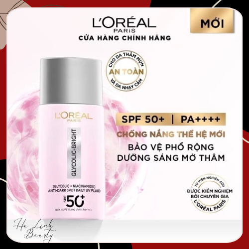 Sữa chống nắng phổ rộng mỏng nhẹ bảo vệ da và dưỡng sáng mờ thâm nám Glycolic Bright Anti-Dark Spot L’Oréal Paris 50ml